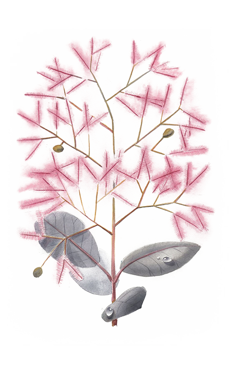 Другое название скумпии — париковое дерево. Ее соцветия действительно напоминают пышный парик. Кроме того, кустарник называют желтым деревом, желтинником, желтуницей — дело в том, что раньше его использовали для изготовления желтого красителя.