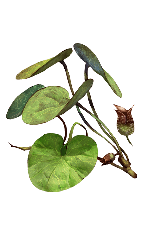 Asarabacca remains with green leaves even after multiple snowfalls. The old leaves die-away only in midsummer after new leaves have appeared. The seed of the asarabacca is spread by ants.