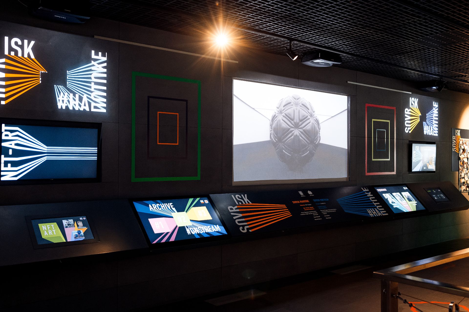 Contemporary art in the context of SOVRISK is gradually becoming an object of research: viewers can vote for their favorite works of art — the work with the highest rating will remain on display for two more weekends. A Russian NFT art video by three artists uploaded to blockchain platforms becomes part of the exhibition, which is not put up for voting.